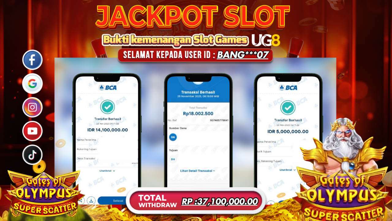 UG8: JACKPOT SLOT GATES OF OLYMPUS 100 RP30,000,000.00, ~ LUNAS