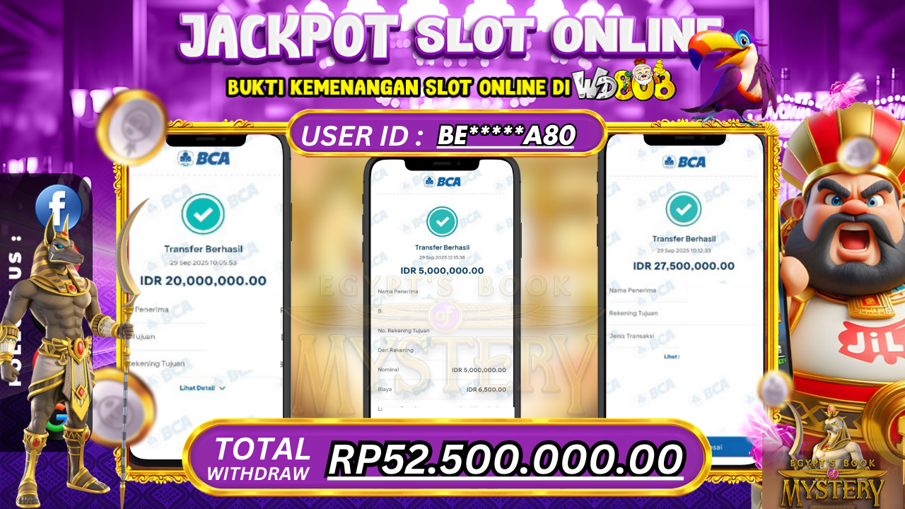 WD808: JACKPOT SLOT Egypt's Book of Mystery ,RP52.500.000.00~ LUNAS