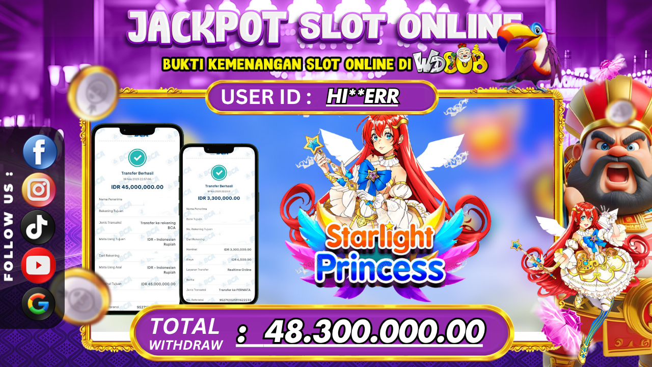 WD808: JACKPOT STARLIGHT PRINCESS Rp 48,300,000.00, ~ LUNAS