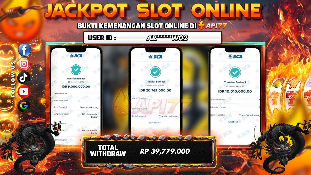 API77 :JACKPOT SLOT MAHJONG WINS 3 BLACK SCATER Rp 39.779.000,- LUNAS