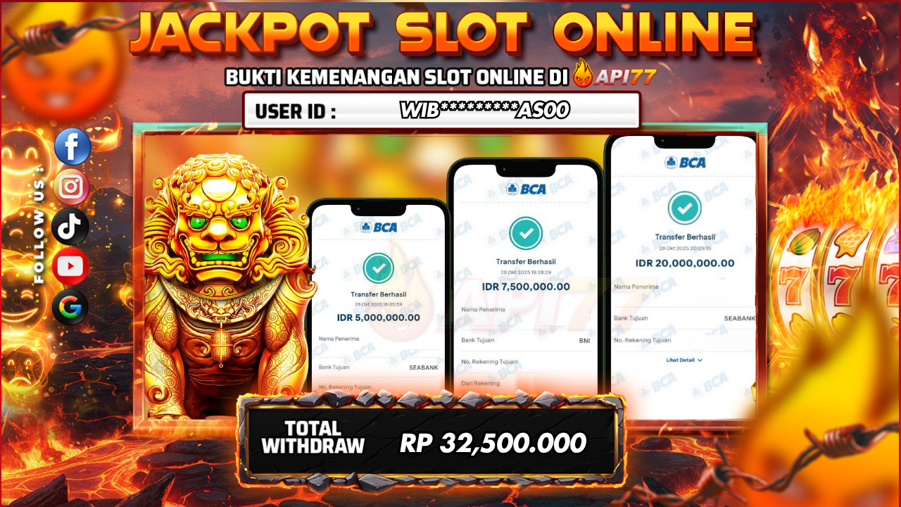 API77 :JACKPOT SLOT 5 LION MEGAWAYS Rp 32.500.000,- LUNAS