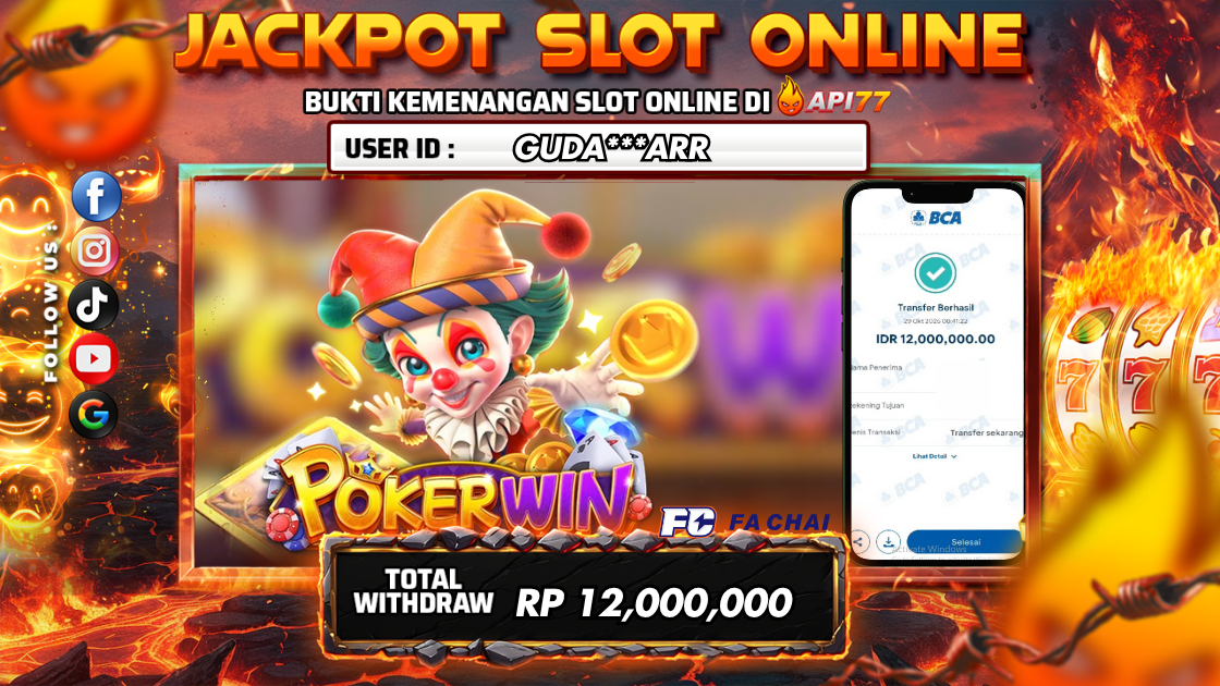API77 :JACKPOT POKER WIN SLOT Rp 12.000.000,- LUNAS