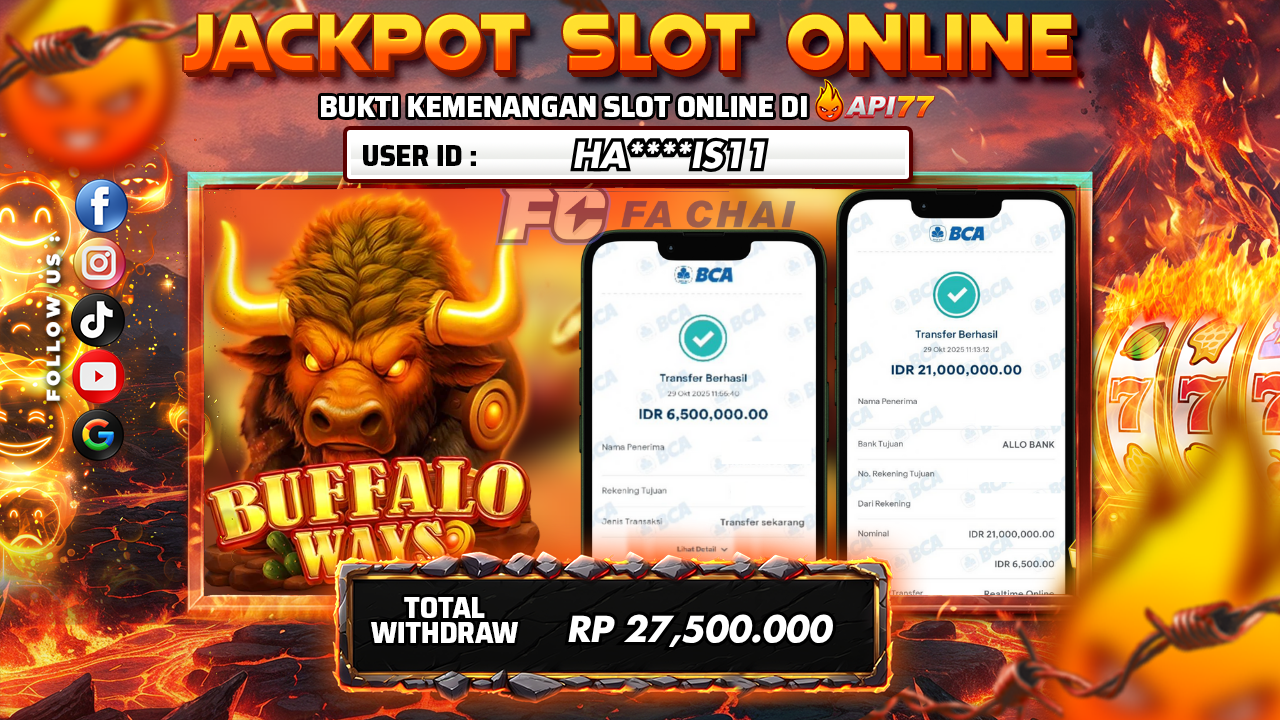 API77 :JACKPOT SLOT BUFFALO WAYS Rp 27.500.000,- LUNAS