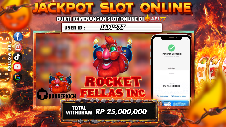 API77 :JACKPOT SLOT ROCKET FELLAS INC Rp 25.000.000,- LUNAS