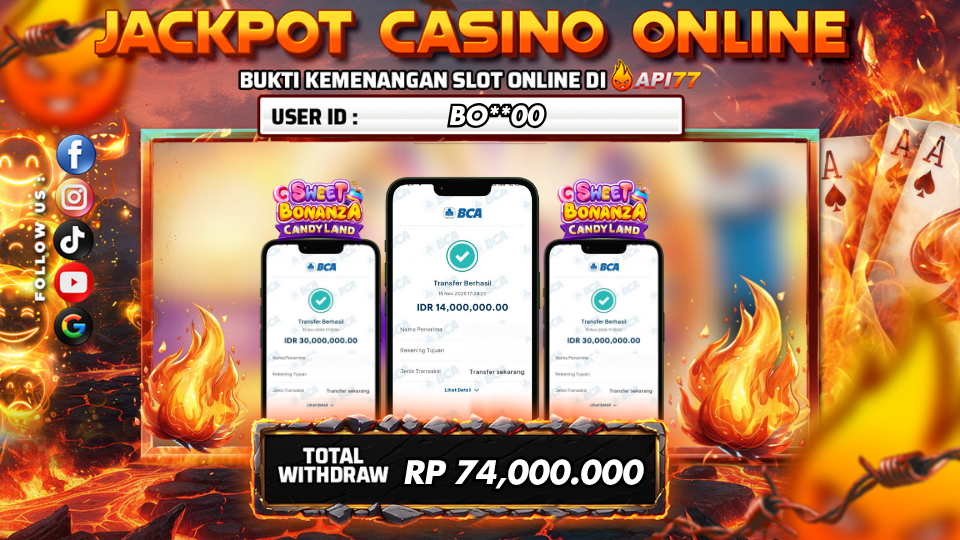 API77 :JACKPOT LIVE CASINO SWEET BONANZA CANDYLAND Rp 74.000.000,- LUNAS