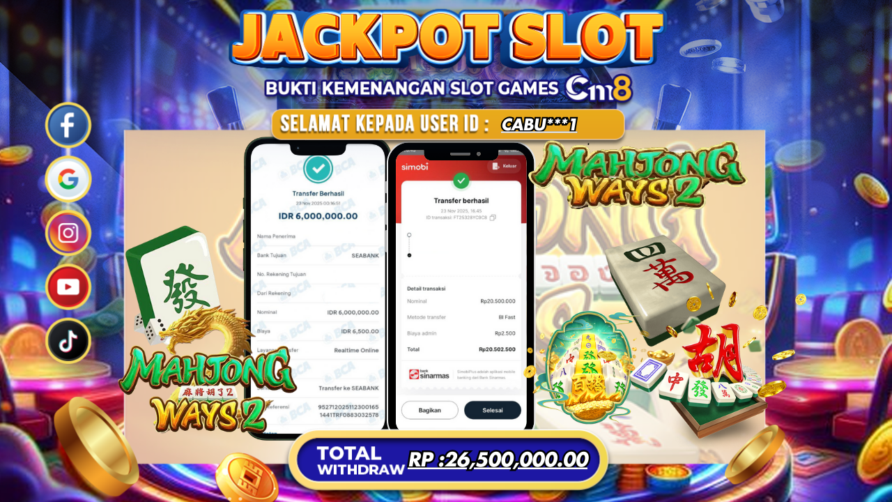 CM8: JACKPOT MAHJONG WAYS2 Rp30,000,000.00, ~ LUNAS